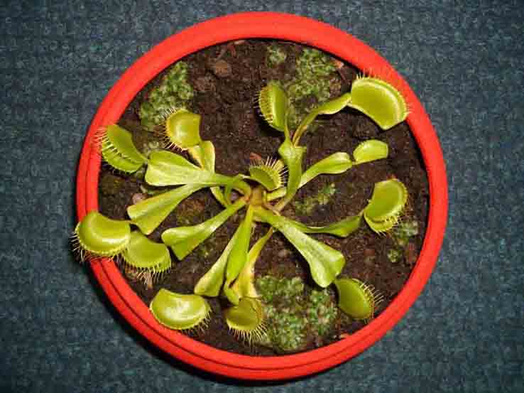 Как только мухоловка попала в дом, сразу встал вопрос о том, во что сажать, как поливать, чем кормить. Горшок для него нужен не глубокий, плоский. В почву желательно добавить сфагнум, но мы нигде не могли его найти. Пришлась в кофемолке размельчить древесную кору, что тоже хорошо. А на дно горшка щедро насыпали дренаж. Посадили. Потом вычитала, что нужно еще и мохом засадить горшок по периметру. Растет.