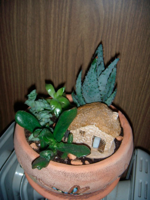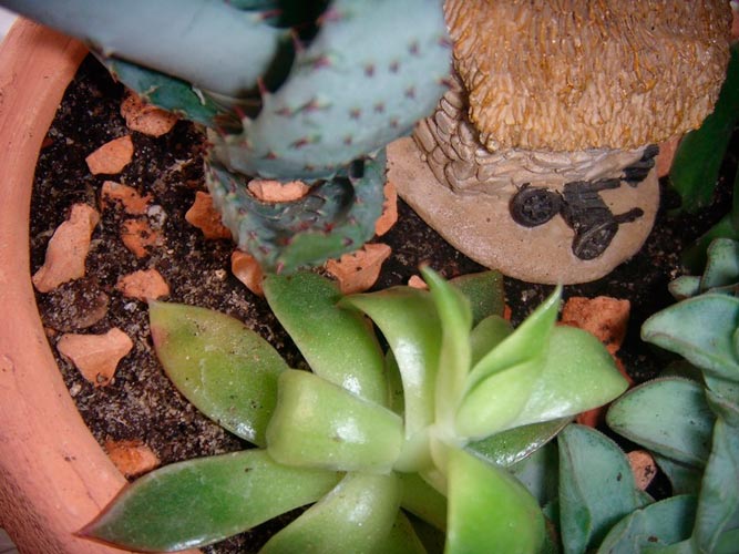на дно я насыплю мелкий керамзит. В набор для кактусов (дерновая земля, древесный уголь, песок, керамическая крошка, биогумус) добавлю вермикулит... немножко и добавлю универсального грунта, чтобы горшок заполнить. В этой смеси и будут размещёны суккуленты. Вот только не знаю, керамическую крошку нужно перемешивать с грунтом или поверх насыпать? Наверно, перемешивать... А сверху посадить мох. Только я пока не знаю, как растительный мох добавить к суккулентам - где его брать и как засеивать...