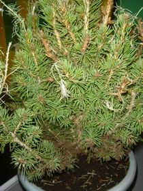 Шайтан какой-то! Скорей всего растение ослаблено отсутствием периода покоя. Честно говоря никогда не видел вянущих молодых побегов на елях. Либо растение истощено, выпускает побеги, но на поддержание сил не хватает, либо проблема в корнях - отмерли/подгнили/завелись вредители. Пересадка была?молодые побеги вянут и хвоя желтеет, но в то же время просыпаются новые почки, молодая хвоя желтоватая растет. Старая практически вся осыпалась, ветки не ломкие
